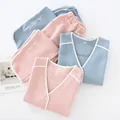 Best New Autumn and Winter Leisure Tops Women's Long-Sleeved Trousers Cotton Thick Air Layer Solid Color Warm Simple Pajamas Set and You will save 50% or US $45.33 today
