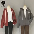 Suede Sweatshirt With Pocket Zip Up Hoodie Solid Poleron Mujer 2021 Plain Oversized Thick Hoodie Drawstring Women Long Sleeve