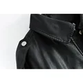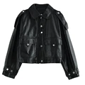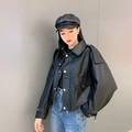Best 2021 Spring Women Short Faux Leather Jacket Biker Green Autumn Coat Big Pocket PU Motorcycle Jackets Loose Streetwear Outerwear and You will save 53% or US $31.99 today