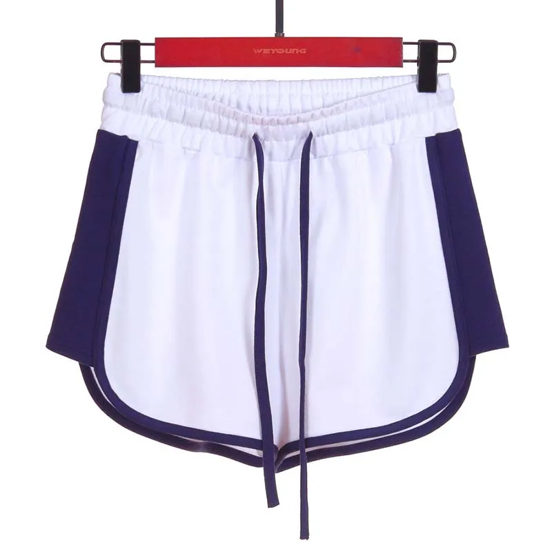 Summer Casual Sports Shorts Women Contrast Color Patchwork Drawstring Elastic Waist Student Jogging Fitness Mini Short Pants